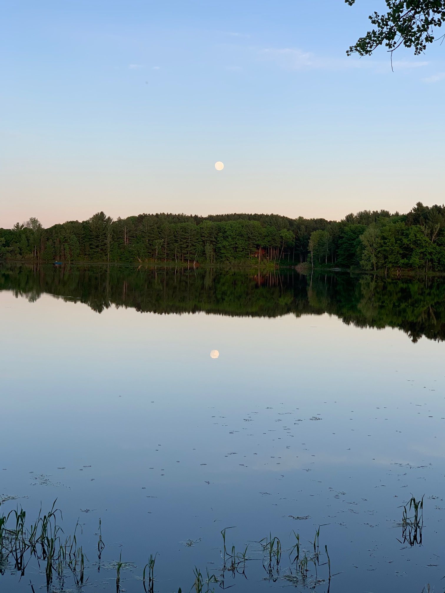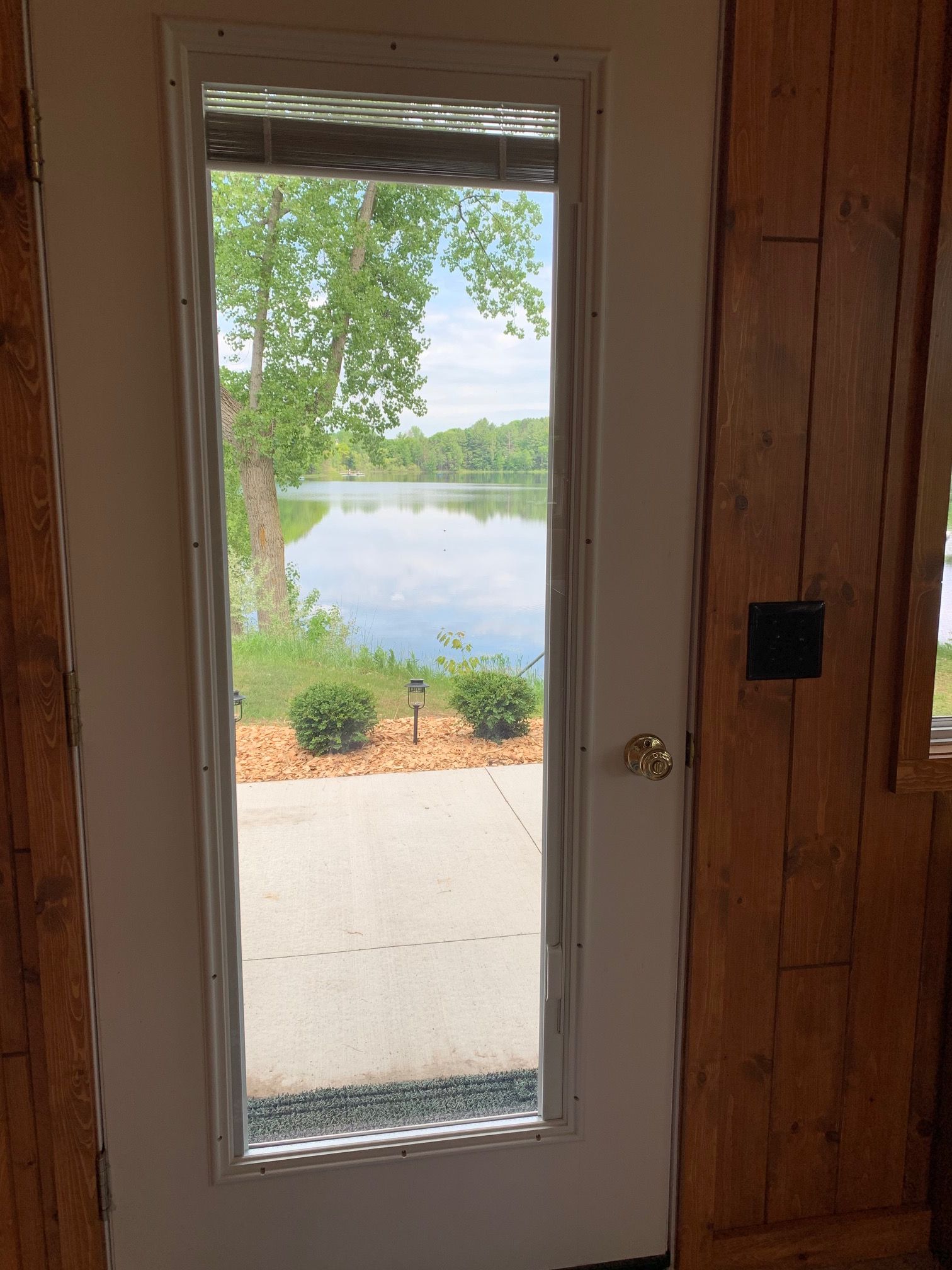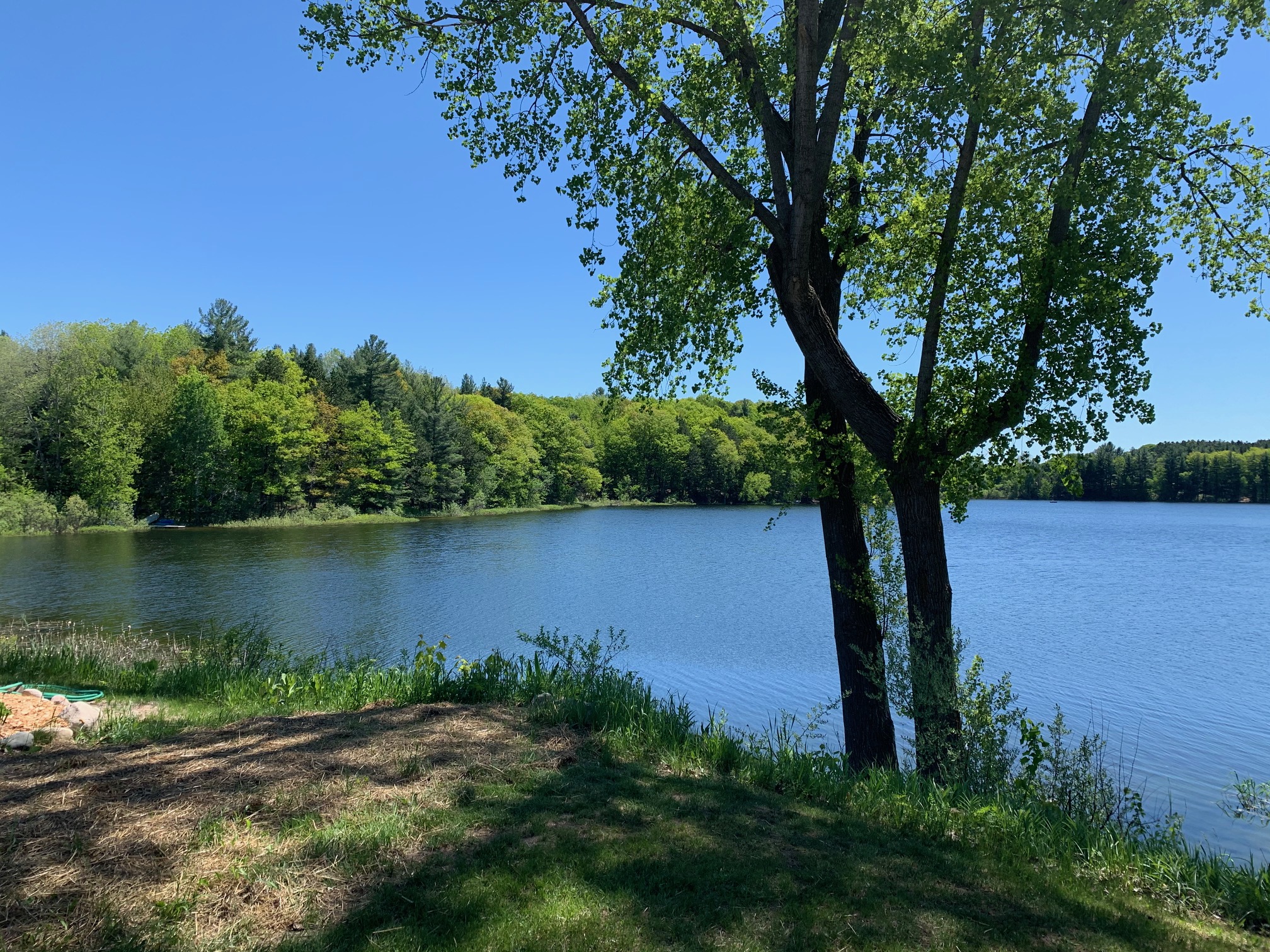 Outside is a large cement patio with a table and chairs and a grill. Beautiful new landscaping was installed this spring and the views of the lake are beautiful from this patio.