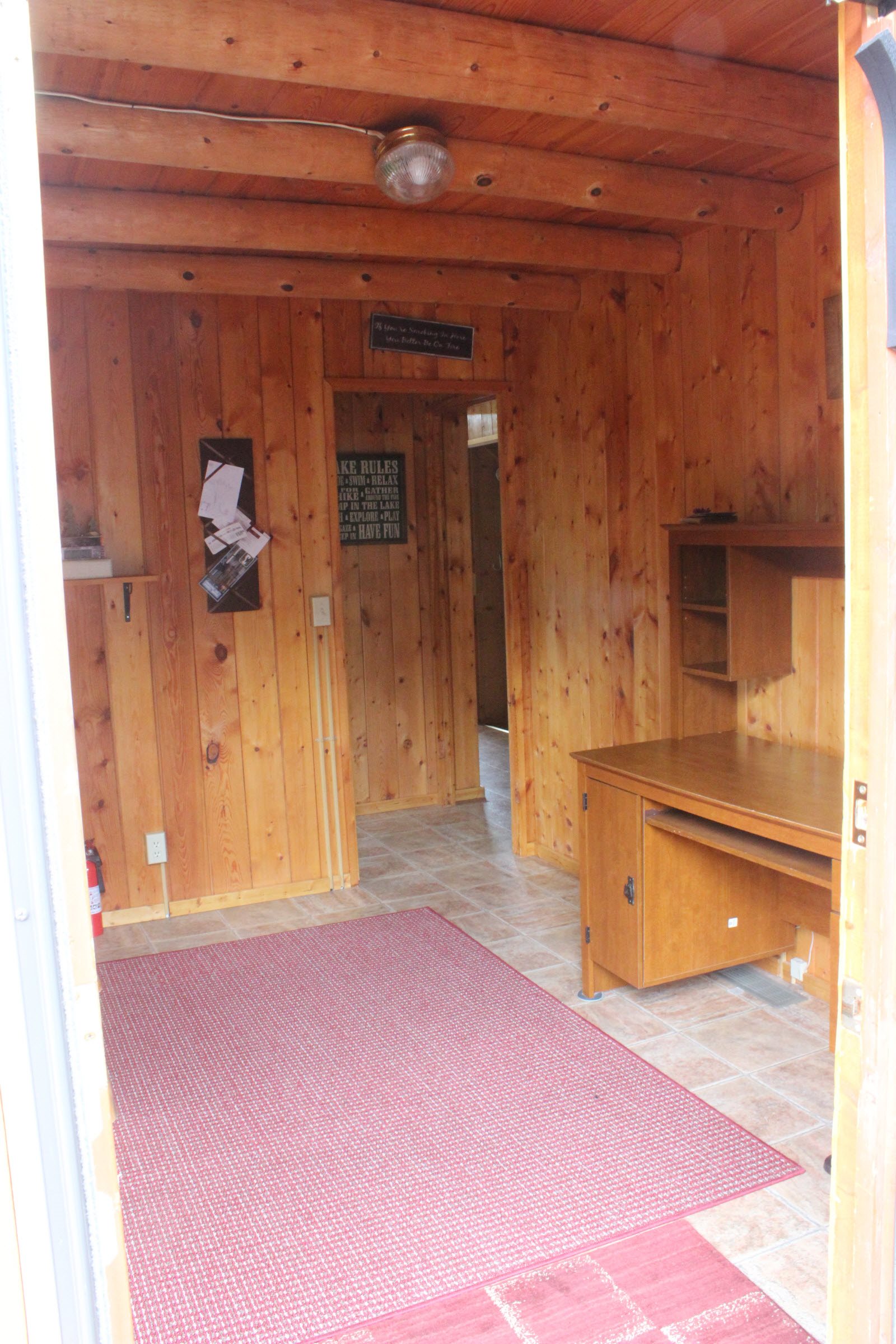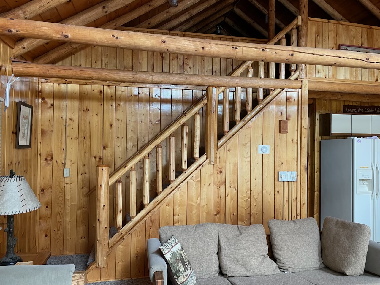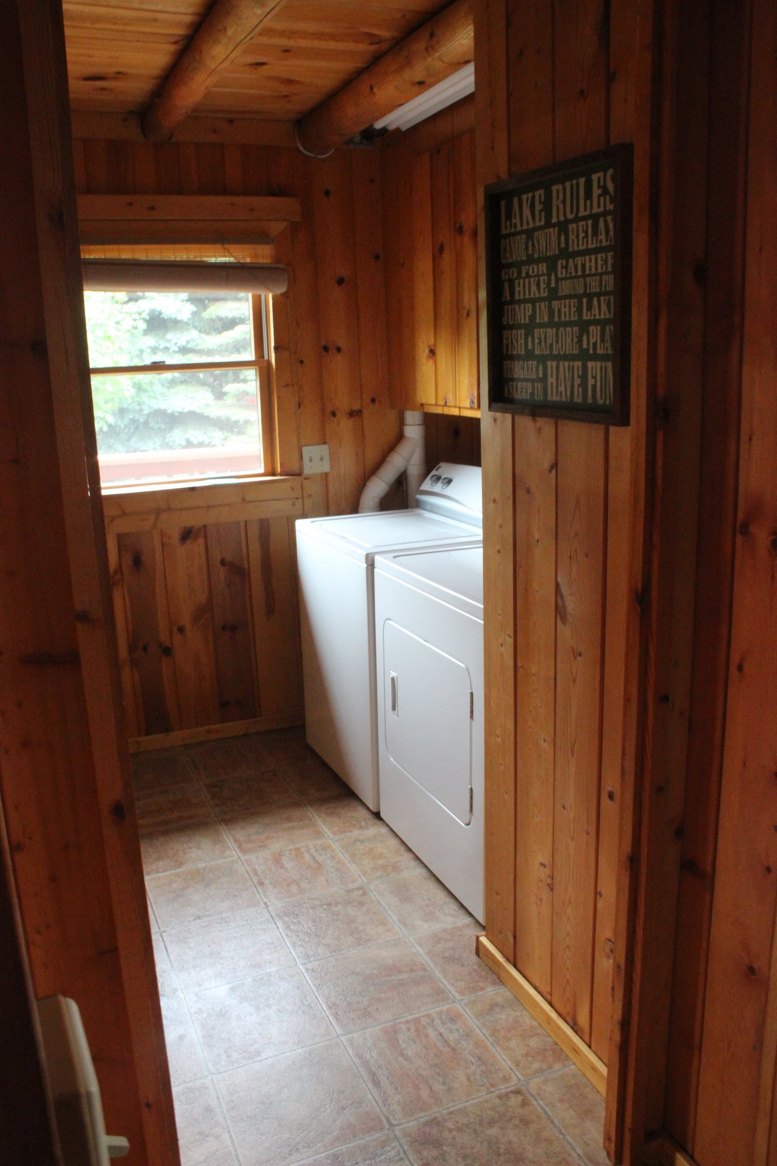 When you walk into the Michigan cottage you will enter a large area that has plenty of space for shoes, coats and other supplies. There is also a washer and dryer in this area for your convenience. On the main floor you will find a large bedroom with a Queen size bed. The kitchen, dining room area and a large sitting area are also on the main floor. Upstairs is a very large loft with two full size beds that gives you great views of the lake. There is also a walk -out level with large sliding doors and another bathroom and sleeping area with two more full size beds. There is an additional bedroom in the walkout level with a full size bed.